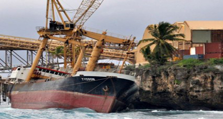 The 78m Panamanian-flagged 'MV Tycoon' was being loaded with phosphate fertiliser in Flying Fish Cove when it broke from its mooring on Sunday. The crew were safely evacuated but weather conditions were so bad that it soon broke in half and began to sink.